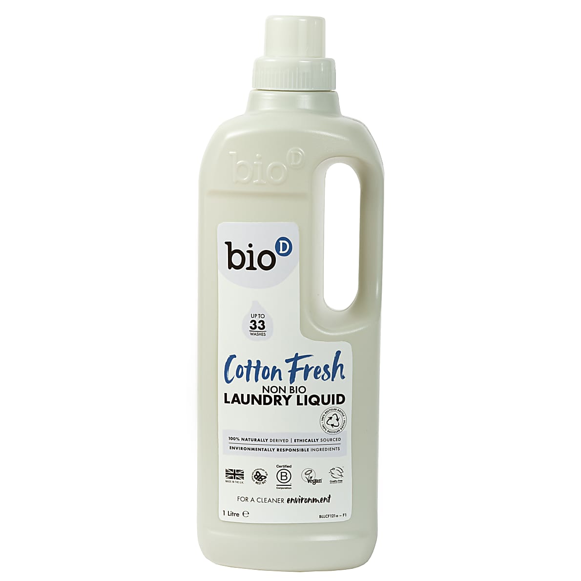 Get fresh, clean laundry with Bio-D Non-Bio Cotton Fresh Laundry Liquid. This plant-based, biodegradable formula delivers outstanding results while being gentle on fabrics and kind to the planet. The long-lasting, crisp cotton fragrance evokes fresh linens on a sunny day. Suitable for whites, colours, and delicates, it works effectively even at low temperatures, helping you save energy.