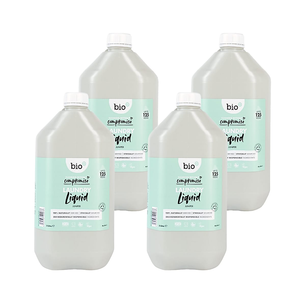 Bio D Concentrated Juniper Laundry Liquid is a natural laundry detergent that is super gentle yet super effective with a rich, lively scent. This versatile non-bio laundry liquid can be used in both automatic and twin tub washing machines or for washing delicate fabrics by hand. Bulk buy your Bio-D laundry liquid with this bundle of 4 x 5L refill bottles to save money and reduce plastic waste on your everyday laundry washing items.