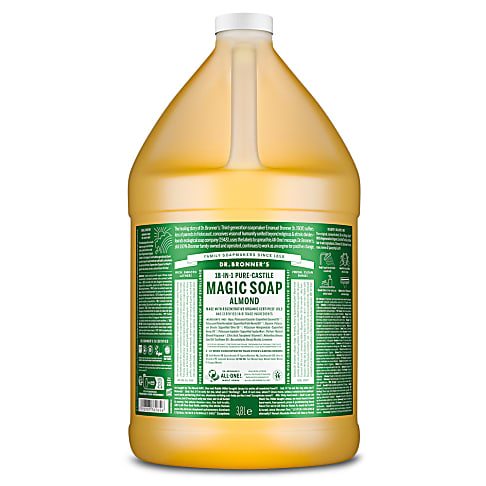 Dr. Bronner's Almond Castile Liquid Soap - 3.8L is part of the range of organic Dr Bronner’s All-One Magic soap products. These eco-friendly soaps are gentle enough to use on your face, hair and body, with products to suit the whole family, whether you're looking for organic baby soap or a something that's suitable for acne-prone skin. Liquid castile soaps are multitaskers, and are tough enough for use as a household detergent too! Explore the full range of Dr Bronner’s products, including Fair Trade hand and body lotions and eco-friendly lip balms, available from Big Green Smile.