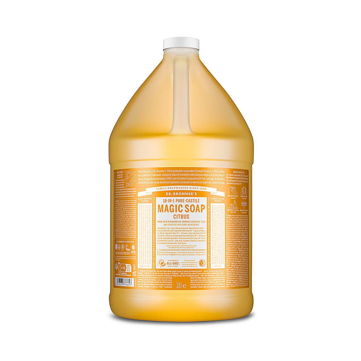 Dr. Bronner's Citrus Orange Castile Liquid Soap - 3.8L is part of the range of organic Dr Bronner’s All-One Magic soap products. These eco-friendly soaps are gentle enough to use on your face, hair and body, with products to suit the whole family, whether you're looking for organic baby soap or a something that's suitable for acne-prone skin. Liquid castile soaps are multitaskers, and are tough enough for use as a household detergent too! Explore the full range of Dr Bronner’s products, including Fair Trade hand and body lotions and eco-friendly lip balms, available from Big Green Smile.