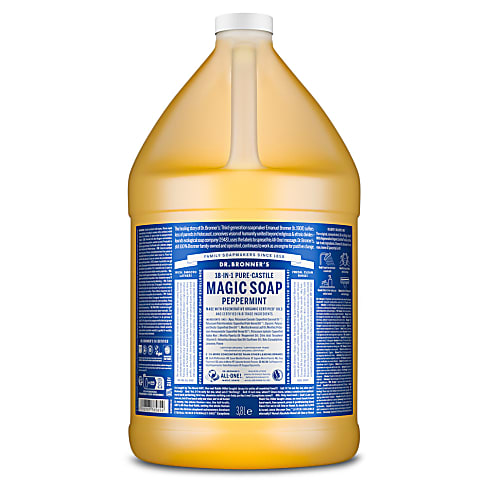 Dr. Bronner's Peppermint Castile Liquid Soap - 3.8L is part of the range of organic Dr Bronner’s All-One Magic soap products. These eco-friendly soaps are gentle enough to use on your face, hair and body, with products to suit the whole family, whether you're looking for organic baby soap or a something that's suitable for acne-prone skin. Liquid castile soaps are multitaskers, and are tough enough for use as a household detergent too! Explore the full range of Dr Bronner’s products, including Fair Trade hand and body lotions and eco-friendly lip balms, available from Big Green Smile.