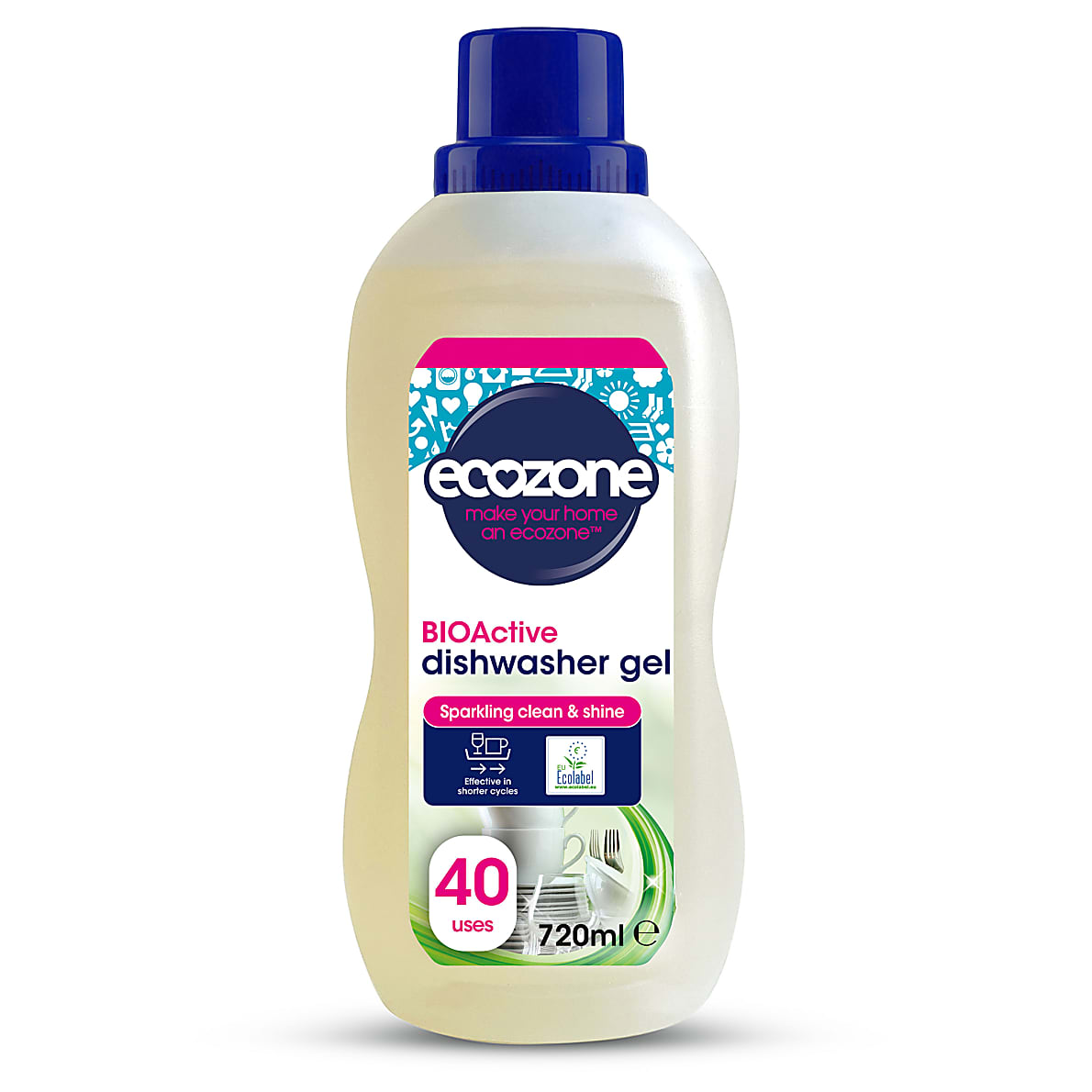 Open the bottle and pour the gel into the dishwasher dispenser. Select your desired washing program.