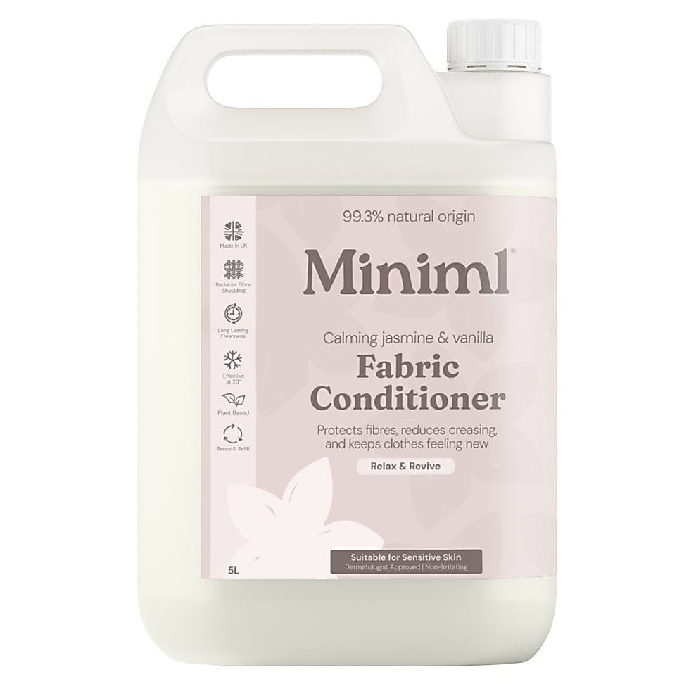 Made with naturally derived softening agents to protect fibres, this fabric conditioner from Miniml leaves clothes soft, fragrant and static-free. With the scent of wild jasmine and vanilla.