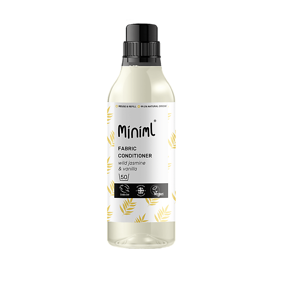 Made with naturally derived softening agents to protect fibres, this fabric conditioner from Miniml leaves clothes soft, fragrant and static-free. With the scent of wild jasmine and vanilla.