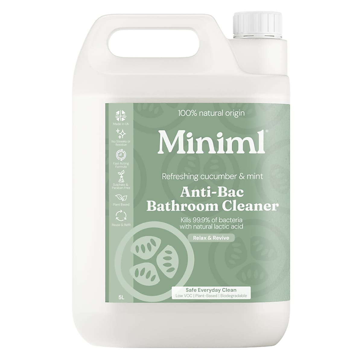 Keep your bathroom sparkling with Miniml’s powerful yet gentle antibacterial cleaner. This plant-based formula eliminates 99.9% of bacteria while effortlessly cutting through limescale and grime - no harsh chemicals needed. Infused with a crisp cucumber and mint scent, it leaves your space feeling refreshingly clean.