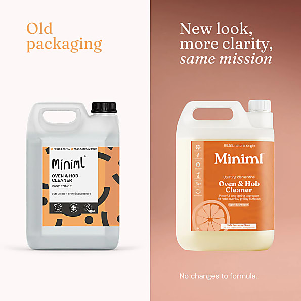 Tackle tough kitchen mess with Miniml's Uplifting Clementine Oven & Hob Cleaner. This naturally derived formula effortlessly dissolves grease and burnt-on grime, leaving your surfaces spotless. Infused with a fresh, zesty clementine scent, it not only cleans but refreshes your kitchen.