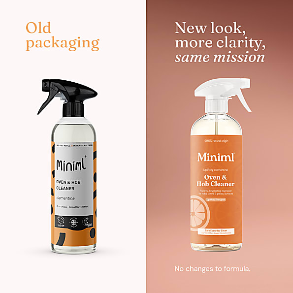 Tackle tough kitchen mess with Miniml's Uplifting Clementine Oven & Hob Cleaner. This naturally derived formula effortlessly dissolves grease and burnt-on grime, leaving your surfaces spotless. Infused with a fresh, zesty clementine scent, it not only cleans but refreshes your kitchen.