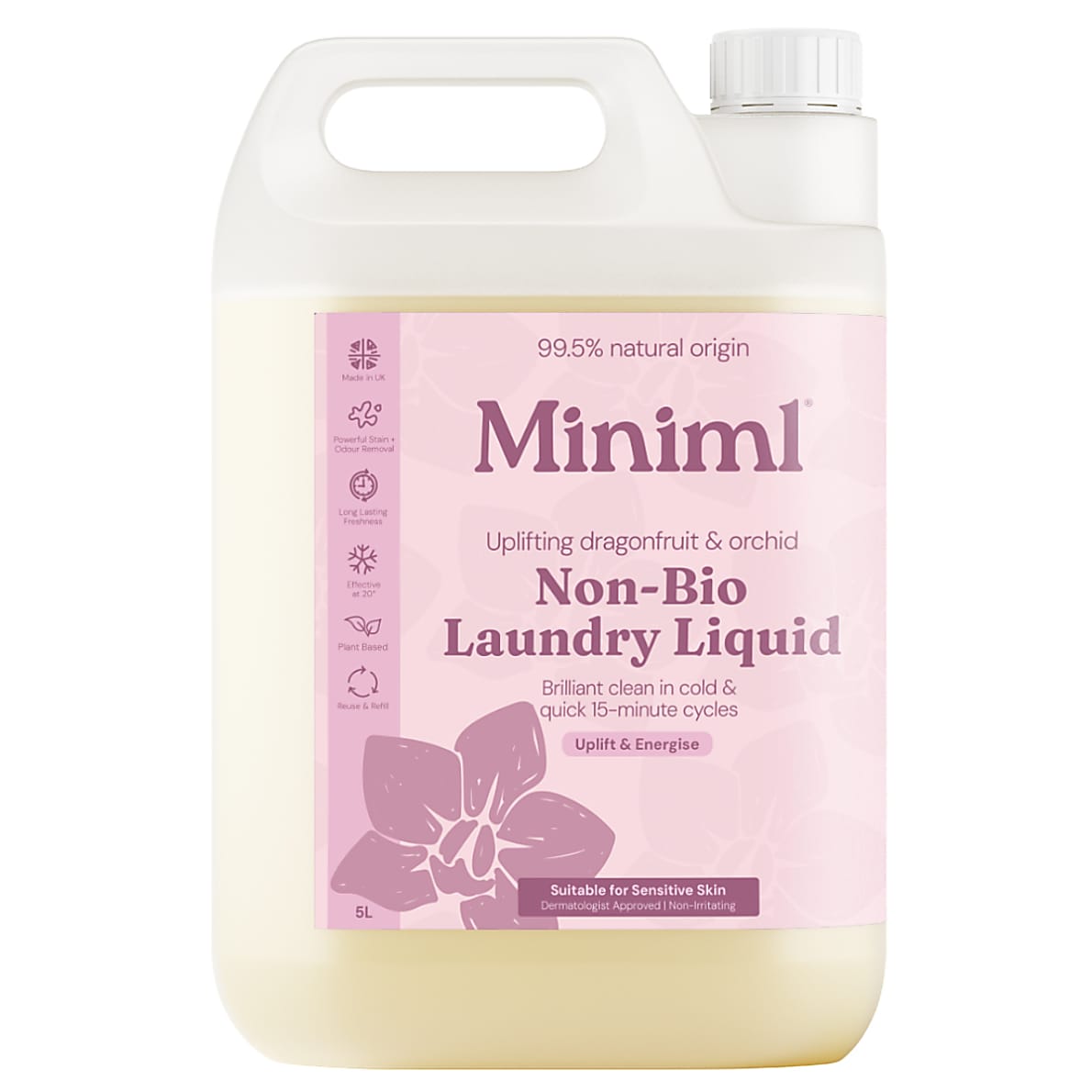 The Dragonfruit & Orchid Non-Bio Laundry Liquid from Miniml can be described as a great all-rounder. Standing up to dirt and stains even on a low temperature, it is kind to your skin and the environment.