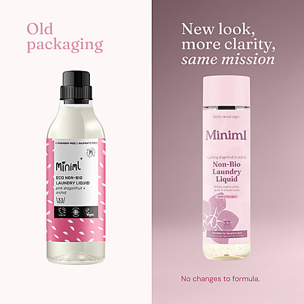The Pink Dragonfruit & Orchid Non-Bio Laundry Liquid from Miniml can be described as a great all-rounder. Standing up to dirt and stains even on a low temperature, it is kind to your skin and the environment.