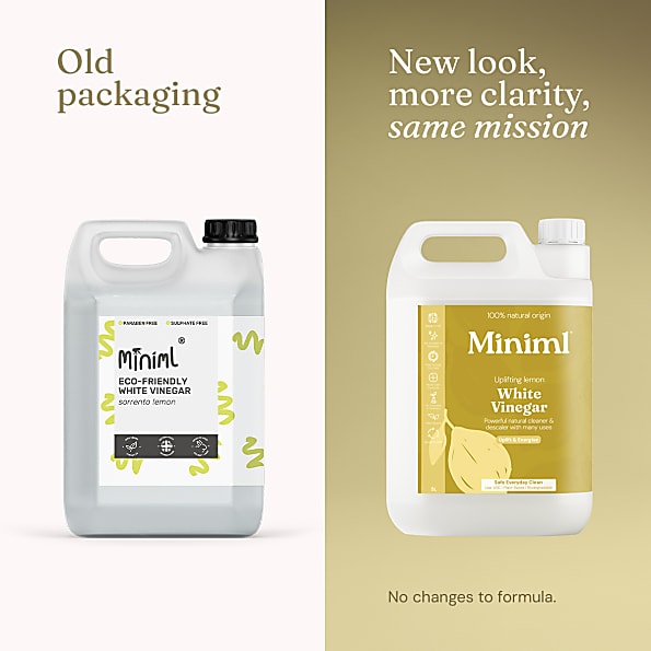 Miniml Lemon White Vinegar is a multipurpose natural cleaner that’s tough on dirt, grime and grease all while being kind to the environment. Specially formulated to powerfully and naturally clean all around the home with an added lemony fresh scent. Also available in a refillable handy spray, this 5L is perfect for bulk buying your cleaning products to reduce plastic waste in the home.