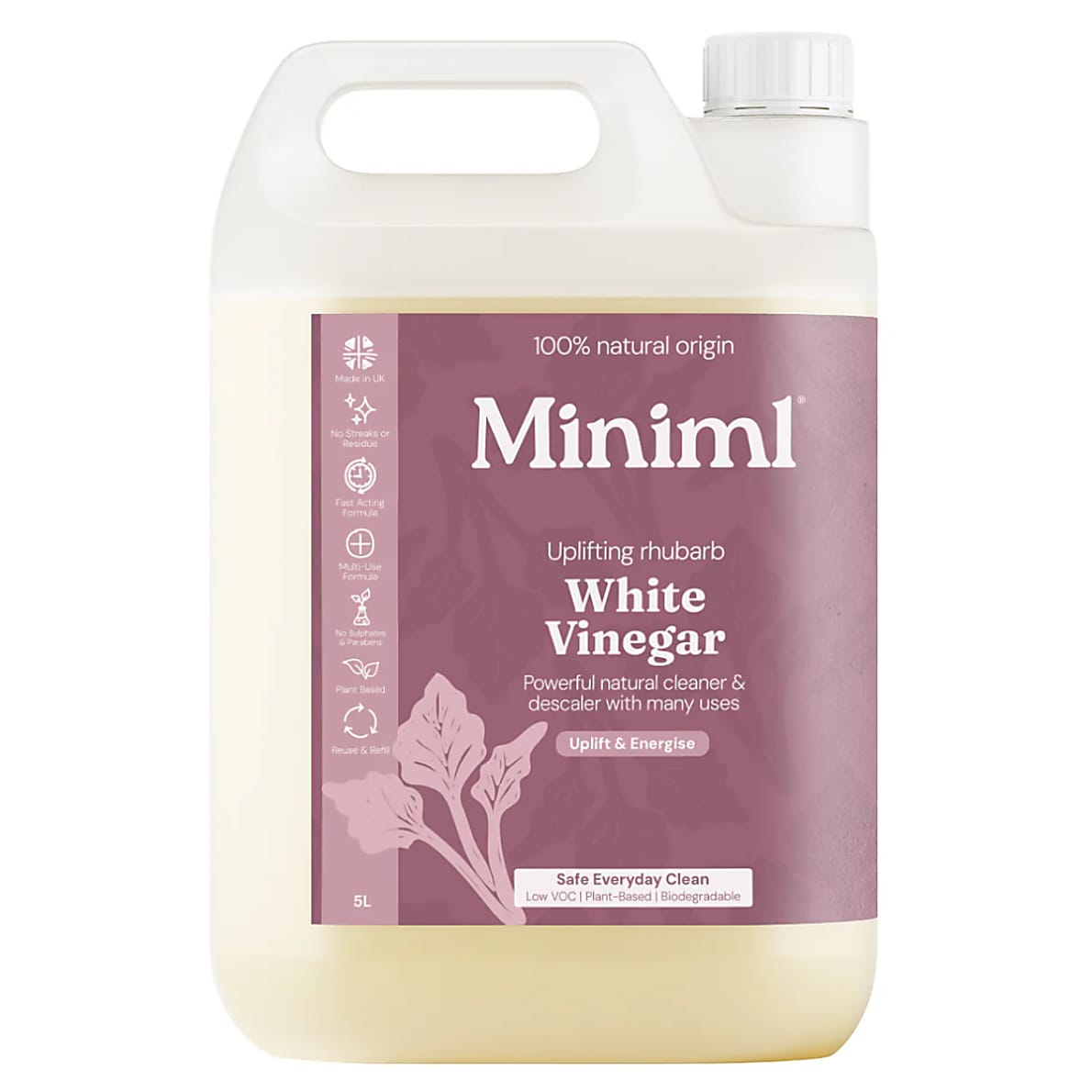 The Wild Rhubarb White Vinegar from Miniml is a multi-functional cleaner which has been specifically formulated to powerfully and naturally clean your home with the fresh scent of wild rhubarb.