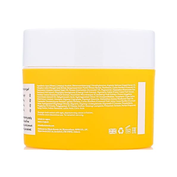 aqua (water), glycerin, persea gratissima (avocado) oil, cocos nucifera (coconut) oil, cetearyl alcohol, propanediol, hydrogenated ethylhexyl olivate, cetrimonium chloride, panthenol, mangifera indica (mango) seed butter, butyrospermum parkii (shea) butter, myrciaria dubia (camu camu) fruit extract, hippophae rhamnoides (sea buckthorn) fruit extract, vaccinium macrocarpon (cranberry) fruit extract, paullinia cupana (guarana) fruit extract, malpighia emarginata (acerola cherry) fruit extract, phytantriol, simmondsia chinensis (jojoba) seed oil, helianthus annuus (sunflower) seed oil, tocopherol, guar hydroxypropyltrimonium chloride, hydrogenated olive oil unsaponifiables, ethylhexylglycerin, parfum (fragrance), phenoxyethanol, citric acid, linalool, limonene, benzyl alcohol, coumarin, benzyl benzoate.