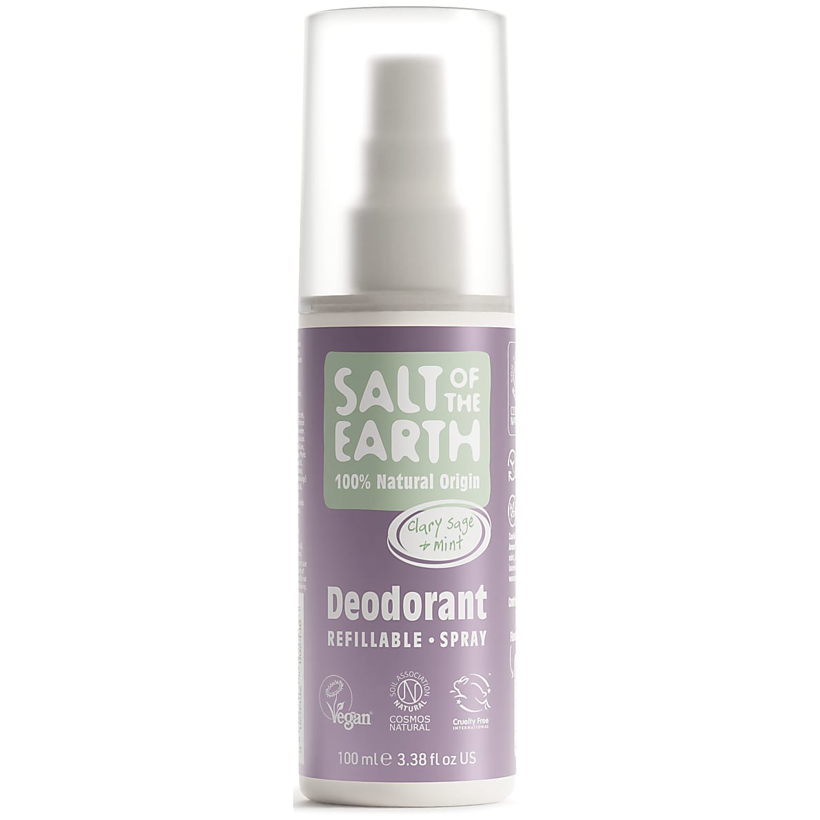 Stay fresh naturally with Salt of the Earth Clary Sage & Mint Deodorant Spray. This refillable, quick-drying formula blends the cooling freshness of mint with the soothing warmth of clary sage, delivering long-lasting odour protection. Enhanced with a natural moisturising factor, it keeps skin hydrated while fighting body odour effectively.