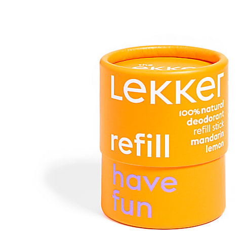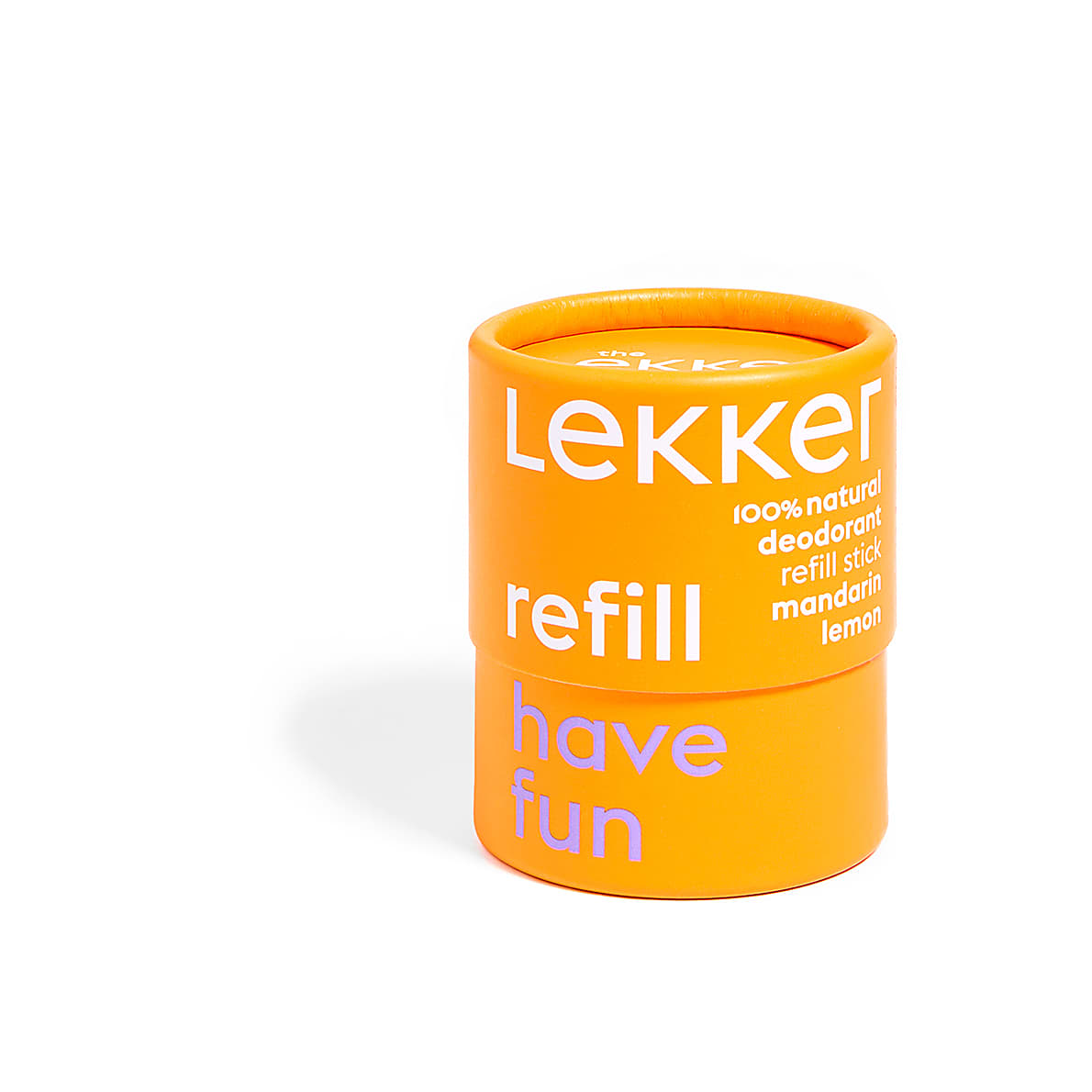 Keep fresh naturally with the Lekker Company Deodorant Refill in the refreshing Be Happy manderin and lemon scent. Designed for use with the Lekker deodorant case, this refill lets you enjoy your favourite natural deodorant while reducing waste.